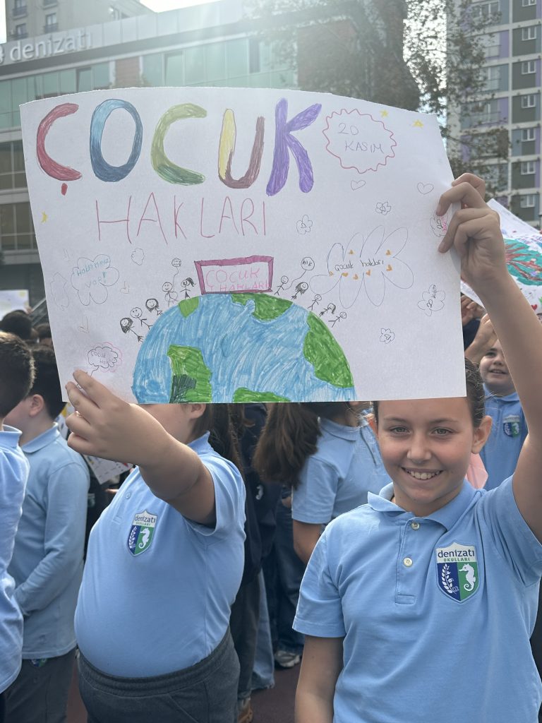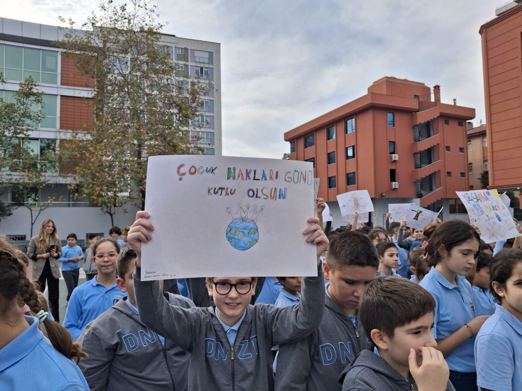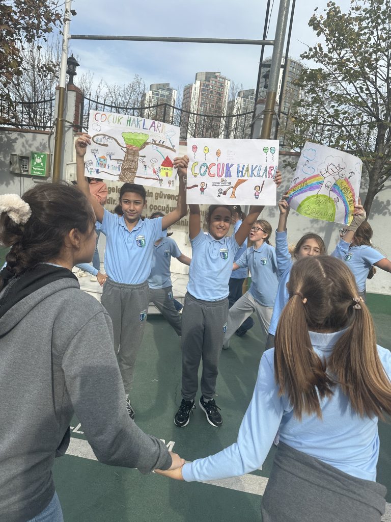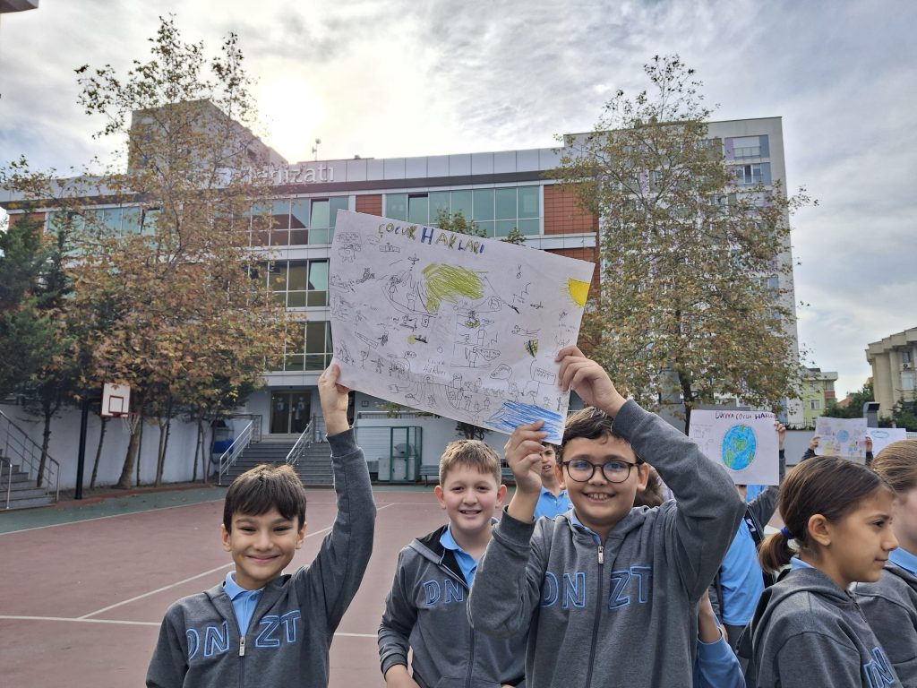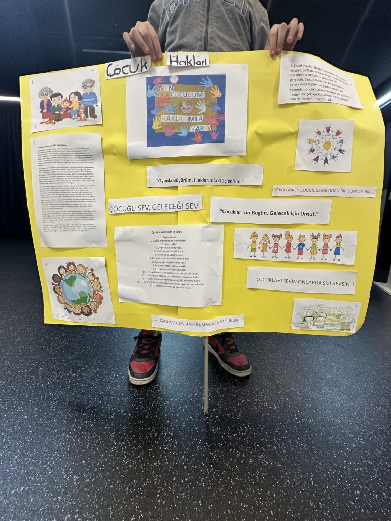 Okulumuzun 5. ve 6. sınıf öğrencileri, 20 Kasım Dünya Çocuk Hakları Günü kapsamında çocuk haklarına dikkat çekmek amacıyla anlamlı bir etkinlik gerçekleştirdi. Öğrencilerimiz, mikrofonu alarak insan hakları, demokrasi ve çocuk hakları gibi önemli konulardaki düşüncelerini özgürce ifade ettiler. Hazırladıkları pankartlarla çocuk haklarını savunan öğrencilerimiz, kendilerini ifade etmenin gücünü bir kez daha deneyimledi. Çocukların haklarını tanımaları, haklarına sahip çıkmaları ve bunu cesaretle dile getirebilmeleri bu etkinliğin en değerli tarafı oldu.