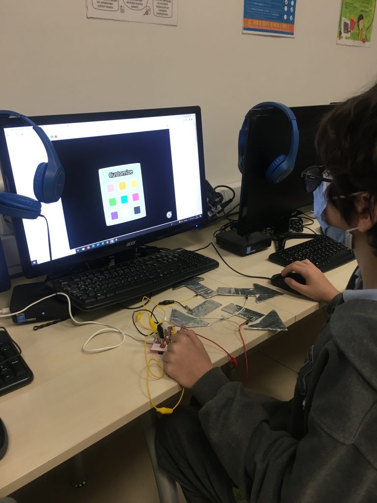 5.Sınıf Kodlama kulüplerimizde Scratch Programlama ile yaptığımız oyunları Makey Makey setlerle çalıştırdık.