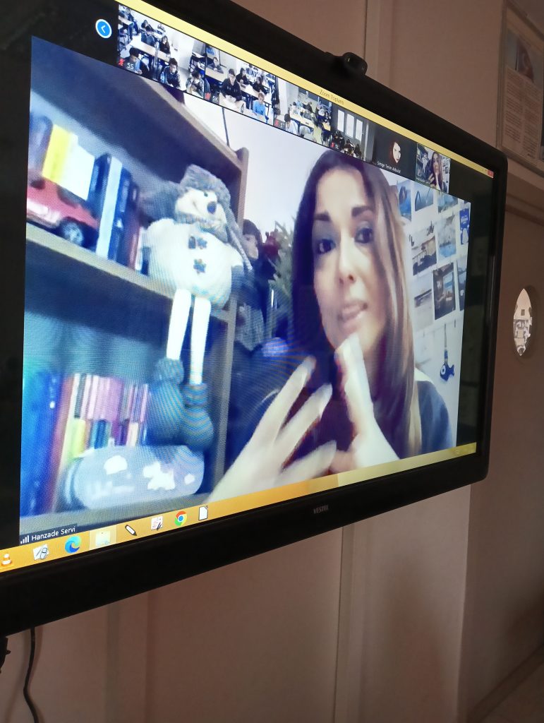 Mizah yüklü kalemiyle her yaştan okurun kalbine seslenmeyi başaran Hanzade Servi “Sevgili Hiç Tanımadığım Çocuk” kitabı ile genç nesilleri mektupların dünyasıyla tanışmaya çağırıyor. Hanzade Servi kitabı yazma hikayesini ve kahramanlarını nasıl oluşturduğunu 5.sınıf öğrencilerimiz ile paylaştı. 2008 Tudem Edebiyat Ödülleri Yayınevi Özel Ödülü ile 2014 Tudem Edebiyat Ödülleri Birincilik Ödülü alan kitabı “Sevgili Hiç Tanımadığım Çocuk” hakkında bilinmeyenleri öğrencilerimizle paylaştı. Hanzade Servi, yazı yazmayı seven öğrencilerimiz için özel olarak tavsiyelerde bulundu ve kitabından örnekler verdi. Öğrencilerimiz okudukların kitabın hikayesini öğrenme ve yazarımız hakkında bilgi edinme fırsatı bulurken, merak ettikleri soruları da sorarak yazarımız Hanzade Servi ile keyifli bir sohbet gerçekleştirdiler.