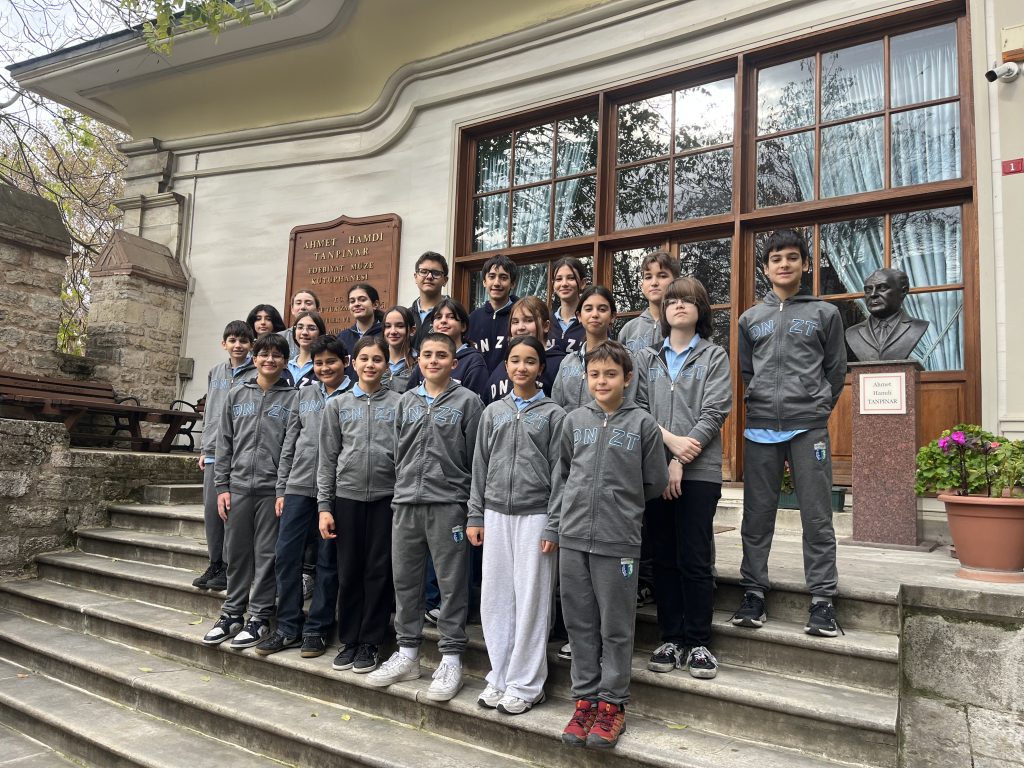 Okulumuzun Almanca ve İngilizce bölümlerinin ortak yürüttüğü proje sunum çalışması kapsamında, 7-S ve 7-T sınıflarımız Ahmet Hamdi Tanpınar Edebiyat Müze Kütüphanesi’ni ziyaret etti. Türk edebiyatının köşe taşlarından biri olan yazar, şair ve milletvekili Ahmet Hamdi Tanpınar’ın bir dönem yaşadığı bu tarihi mekân, günümüzde “Edebiyat Müze Kütüphanesi” olarak kültür hayatımıza kazandırılmıştır.