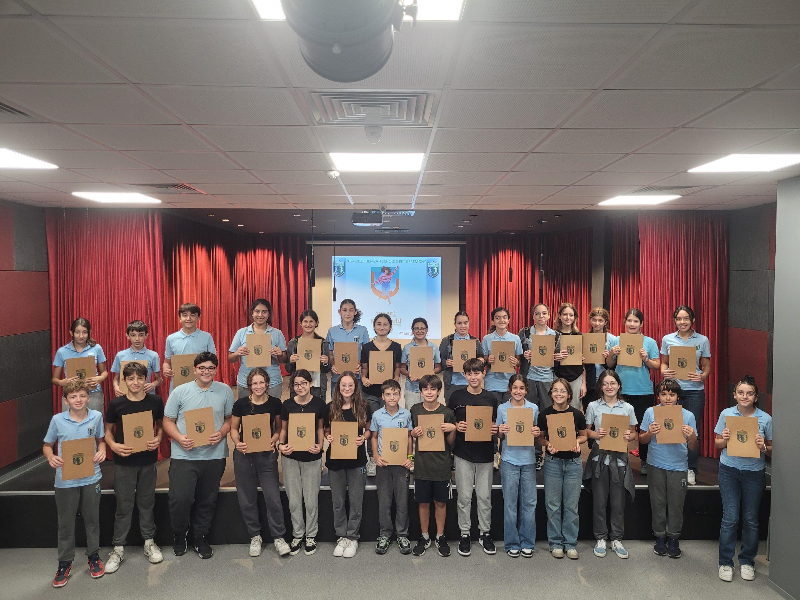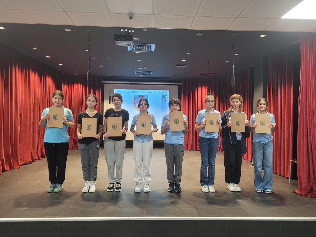 CAMBRIDGE PRELIMINARY (PET) SINAVI SERTİFİKA TÖRENİ 2023-2024 Eğitim Öğretim yılında Preliminary (PET) sınava giren öğrencilerimizin Cambridge PET sertifikaları, okulumuzda düzenlenen törenle öğrencilerimize verilmiştir. Öğrencilerimizi başarılarından dolayı kutluyoruz.