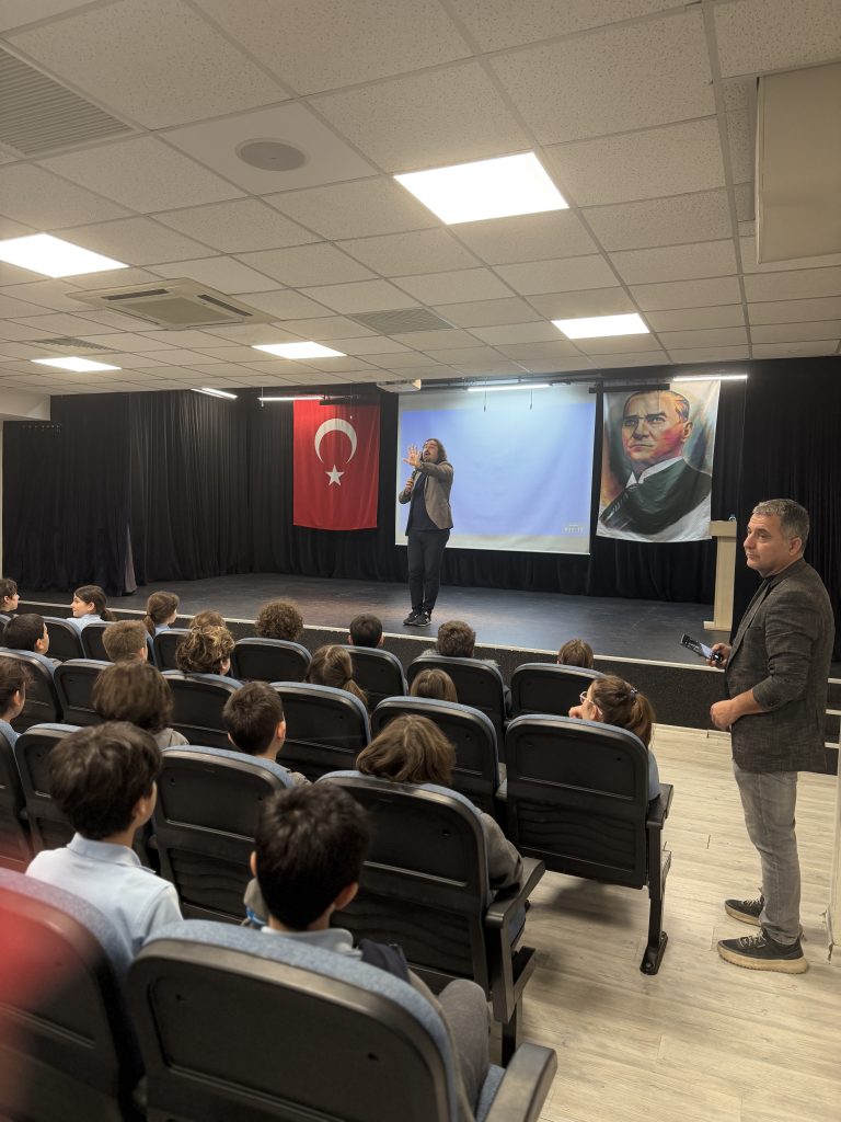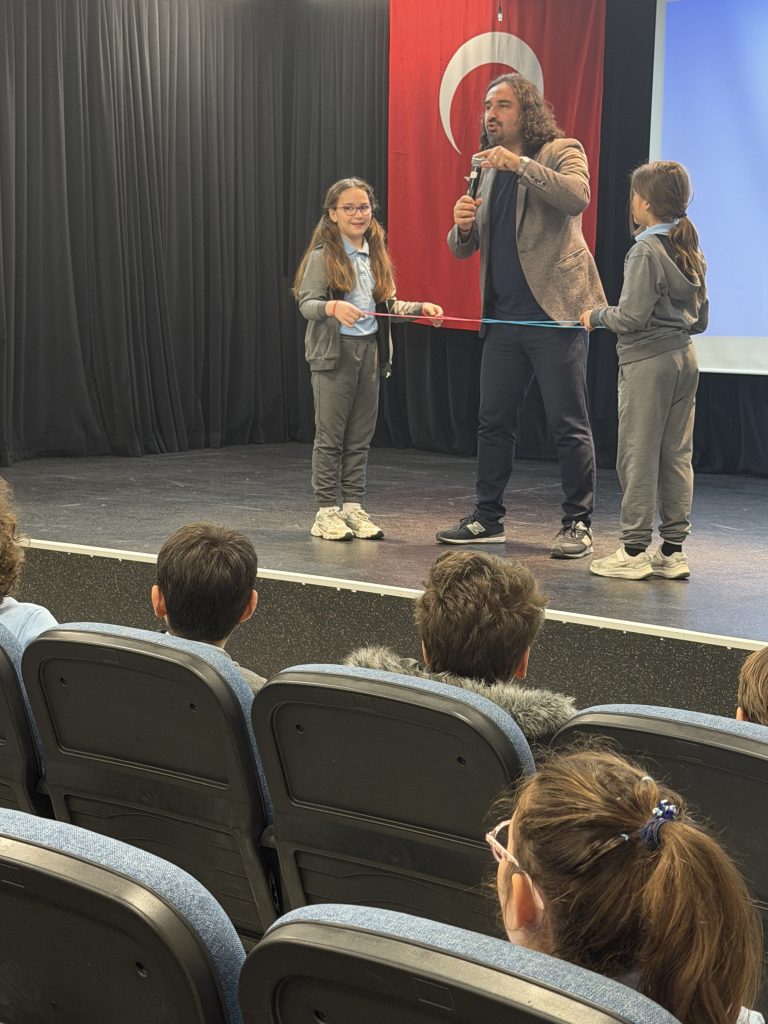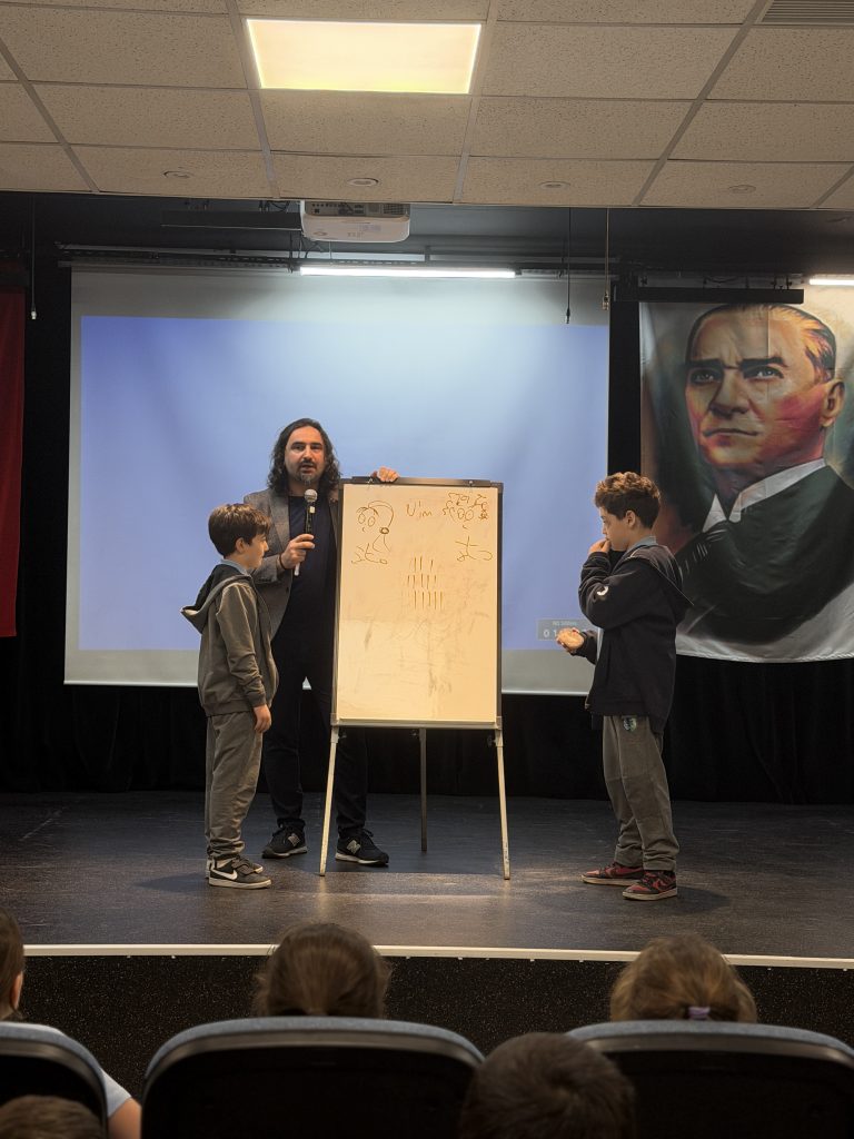 Matematik bölümü olarak öğrencilerimize okuttuğumuz Şifrelerin Peşinde İstanbul kitabının yazarı Hasan Topdemir, 11 Mart Çarşamba günü okulumuzu ziyaret ederek 4. sınıf öğrencilerimizle oldukça keyifli ve verimli bir söyleşi gerçekleştirdi. Pi Gününü kutladığımız hafta kapsamında gerçekleşen bu buluşmada yazarımız, öğrencilerimizle interaktif matematiksel oyunlar ve dikkat geliştirici etkinlikler oynayarak söyleşiyi daha da eğlenceli ve unutulmaz hale getirdi. Öğrencilerimizin büyük ilgiyle katıldığı etkinlik, merak uyandıran sorular ve samimi paylaşımlarla zenginleşti.