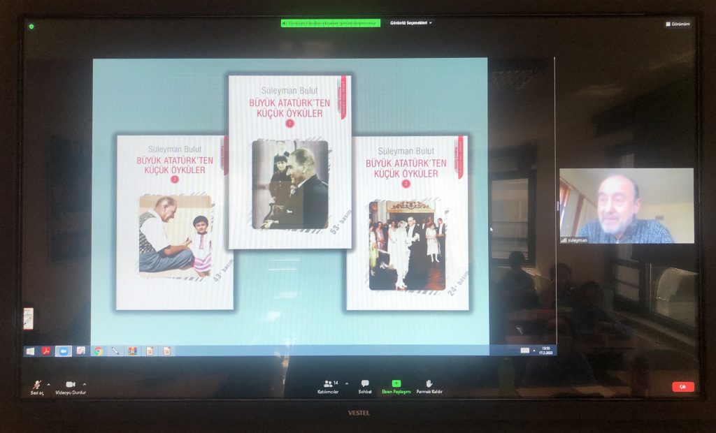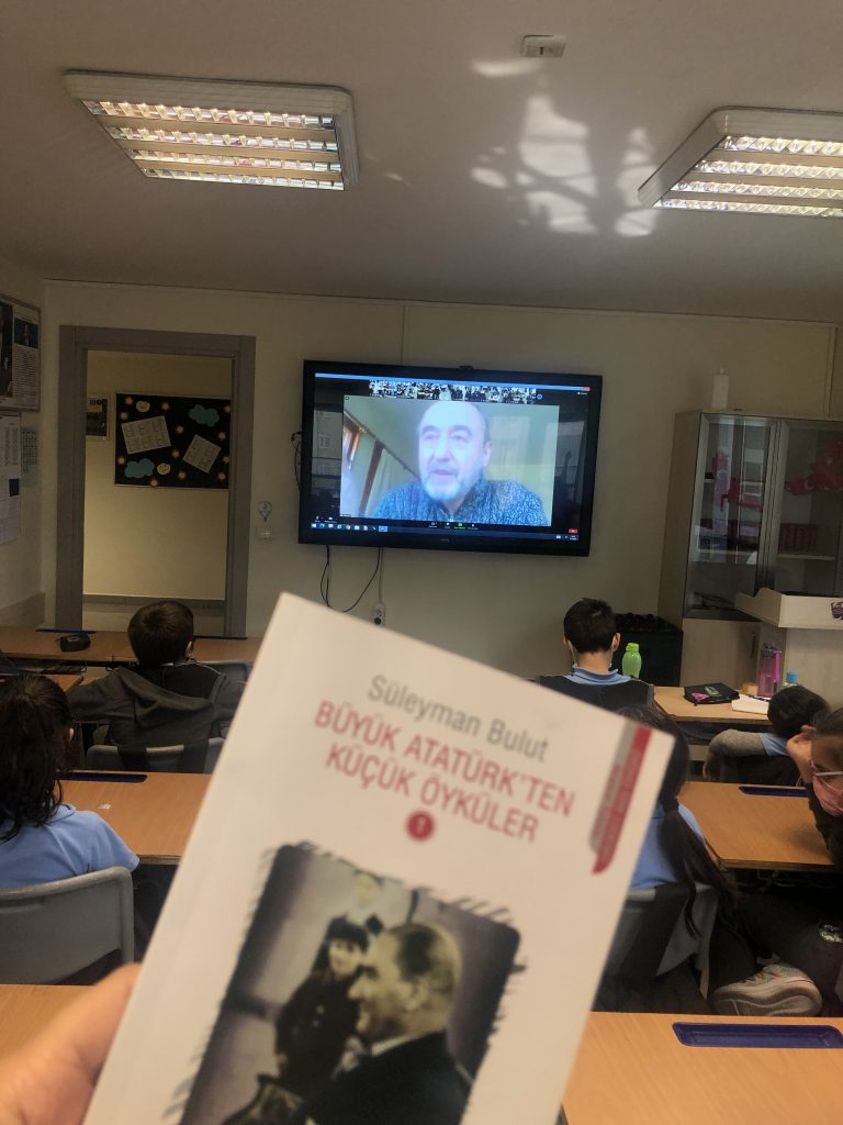 17 Şubat Perşembe günü “Büyük Atatürk’ten Küçük Öyküler” kitabının yazarı Süleyman Bulut, 4. sınıf öğrencilerimizle keyifli bir söyleşi gerçekleştirdi. Süleyman Bulut, Atatürk ile ilgili fotoğrafları ve anıları öğrencilerimizle paylaştı. Öğrencilerimiz de kitap ile ilgili sorularını yazarımıza ilettiler. Yazarımıza bu keyifli dakikalar için çok teşekkür ederiz.