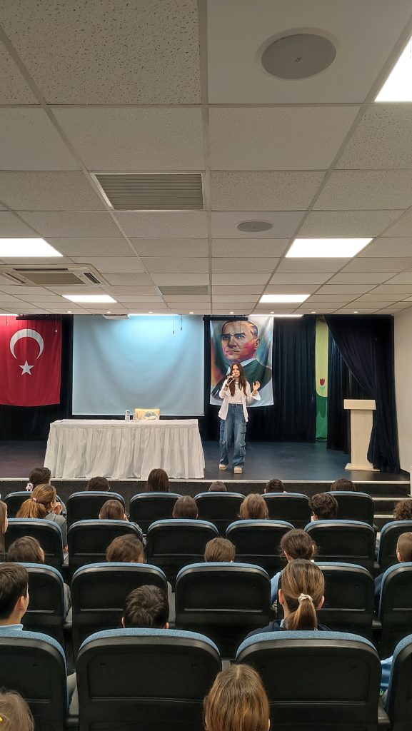 6 Ocak Salı günü Hiç Takipçili Çocuk, adlı kitabın yazarı Hanzade Servi 5. sınıf öğrencilerimizle kitabın yazım sürecinden karakterlere kadar pek çok konuda keyifli ve öğretici bir sohbet gerçekleştirdi. Öğrencilerimiz merak ettikleri soruları yazarımıza yönelterek hem kitap sevgilerini pekiştirdiler hem de yazarlık hakkında yeni bilgiler edindiler. Bu keyifli söyleşi için yazarımıza teşekkür ederiz.