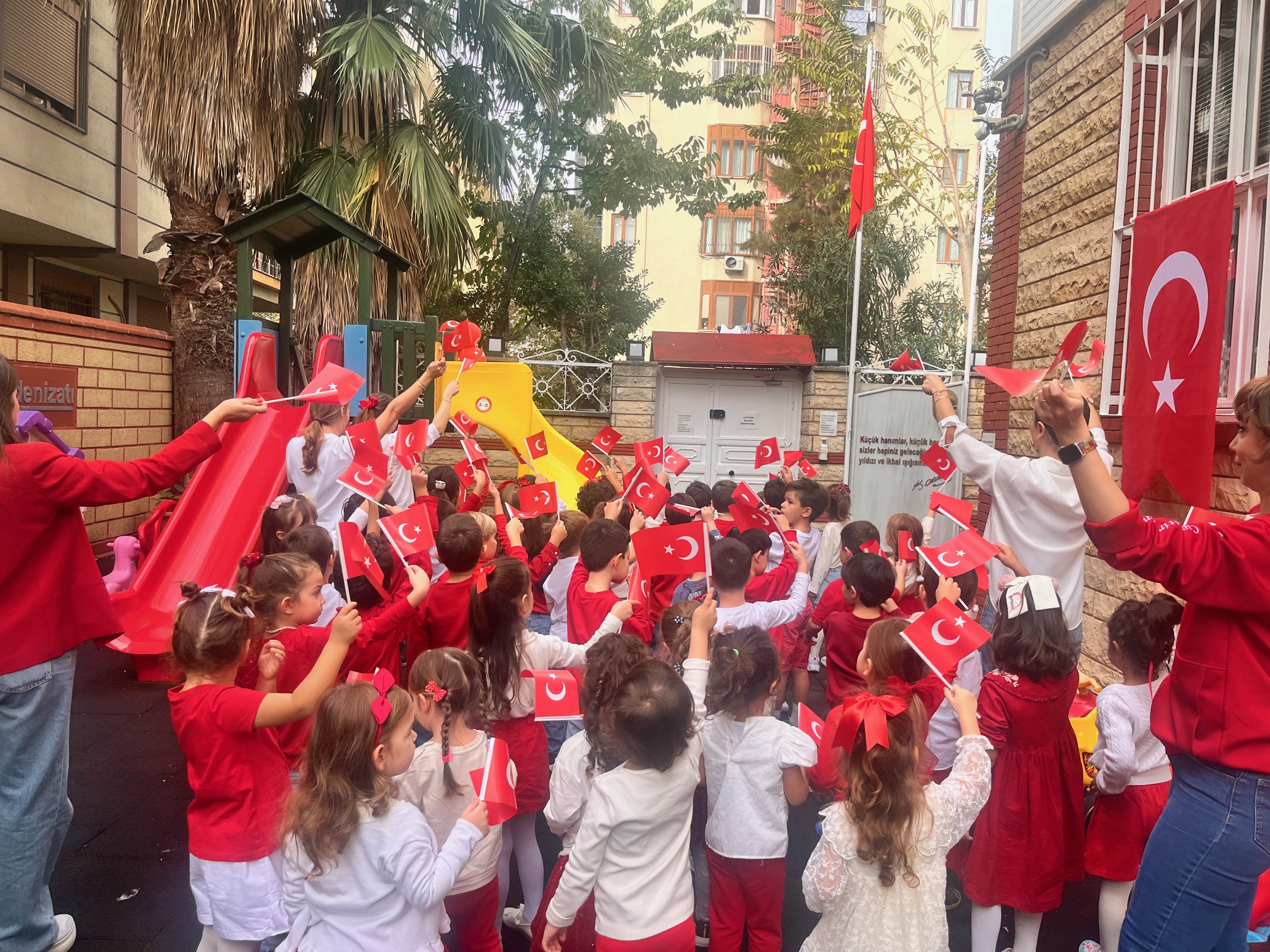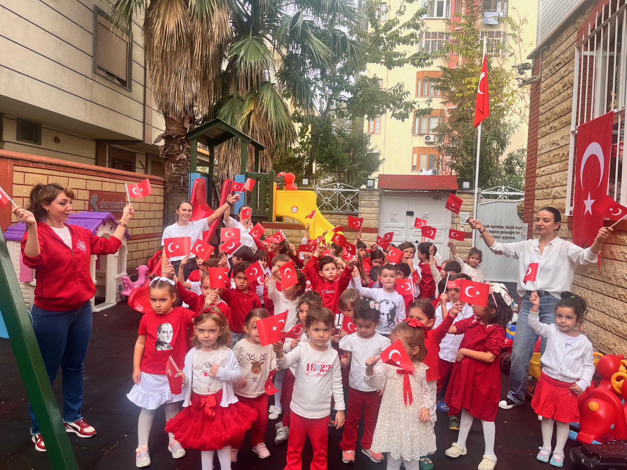 Denizatı Anaokulları öğrencileri olarak Cumhuriyetimizin 102.yılını büyük bir gurur ve coşkuyla kutluyoruz. Bizler Cumhuriyetin bekçileri, Atatürk’ün sesi, geleceğin büyükleriyiz.
