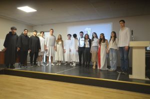 “Dünya Felsefe Günü” her sene Kasım ayında kutlanmaktadır. Bu kapsamda 11.sınıf görevli öğrencilerimiz okulumuz konferans salonunda bir sunum gerçekleştirdiler. Felsefe tarihinin önemli isimleri olan “Sokrates,Hypetia,Nietzsche,Salome”, öğrencilerimiz tarafından sahnede önemli olaylarıyla, sözleriyle, şiirleriyle canlandırıldı. Böylece tüm öğrencilerimiz, felsefenin hayatımızdaki yerini ve önemini sahnedeki arkadaşları aracılığıyla da sorgulamış oldular.