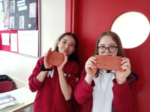 KİL TABLET ÇALIŞMASI 9.sınıf öğrencilerimiz ile kil tablet çalışması yaptık. Öğrencilerimiz bu deneyim sayesinde hem kağıt kullanılmadığı dönemlerde insanların yazı yazmada ne kadar zorlandığını deneyimlediler hem de bu etkinlik sayesinde keyifli vakit geçirdiler.